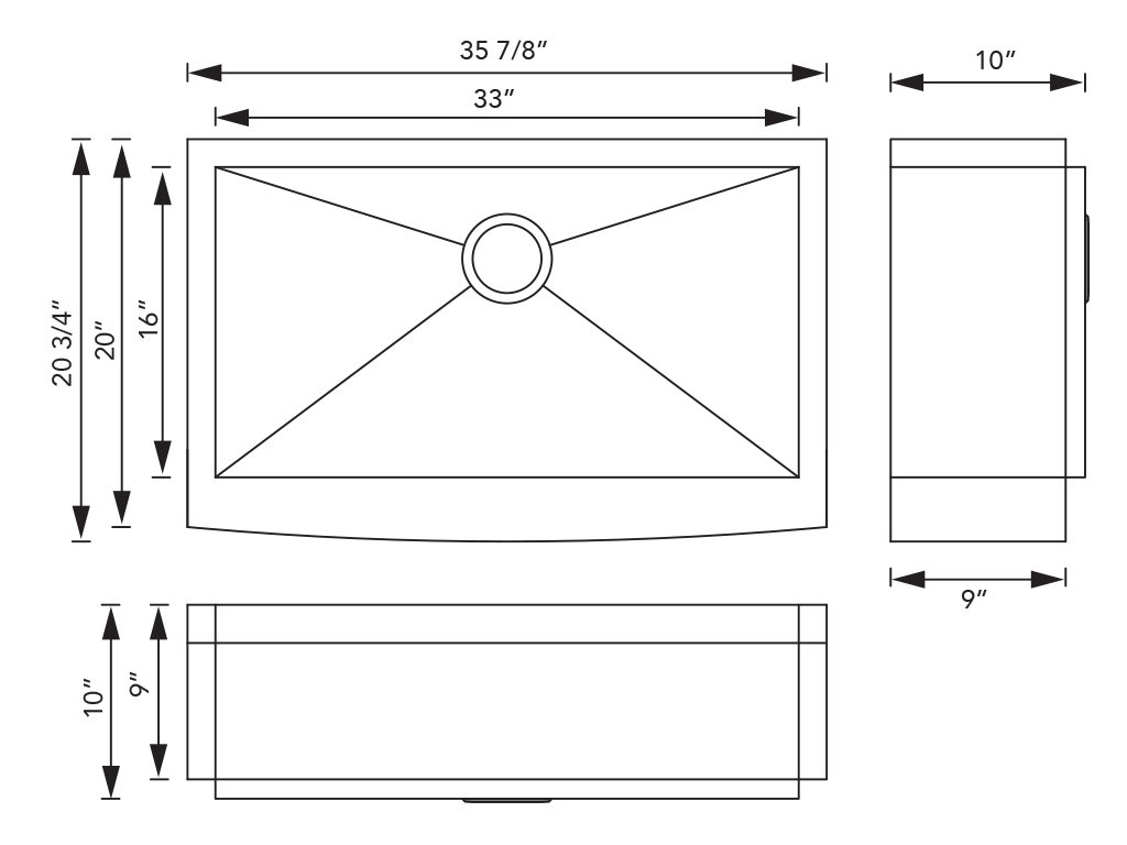 Single Bowl – 35 7/8" x 20 3/4" x 10"
